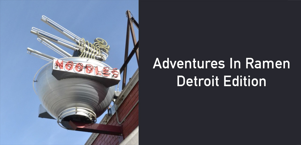 When Eric and I travel, we scope out the ramen scene to see if anyplace strikes our fancy. We visit the Detroit-area a few times a year, and one ramen restaurant we’ve gone to (and revisited) is Johnny Noodle King. Located in an industrial area near the riverfront, the ramen sign shines like a beacon of light among the old brick buildings. The menu offers everything from brothed noodles to sauced noodles, so there is no question that noodles are the star here.